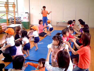 本年第2回目の親子体操教室が開催されました。初めて参加されるお子さんも、ももたろうクラブのお友達もみんなで仲良く『動物園に行こう!』と題していろんな動物に変身しました。親子のスキンシップをとりながら楽しいひとときを過ごしました。お子さんはお母さんと一緒に体を動かせて大満足の様子で、きっと次回開催日にも笑顔で幼稚園に来てくれることでしょう。6月6日(日)には第51回の運動会の中で、入園前のお友達が参加できるプログラムがあるから、みんな待ってるよ~!
