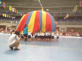 躍動感溢れるパラバルーンの大輪を咲かせた【年中】さん、心を1つにして、それぞれの役目をやりとげた【年長】さんの組体操とマーチング…