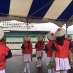 雨天のため急遽、夜に開催される縁日屋台のテントを間借りさせてもらっての、本演奏のみを披露してきました。テント内は園児でギュウギュウ詰め、園児も少々戸惑いましたが、立派にお出迎え演奏を披露することができました。なんと…続けて3回も演奏しました!最後に元気な声で「いらっしゃ~い!ようこそ!北九州へ~!」と歓迎の言葉もバッチリ披露できて、乗客のみなさんから、たくさんの拍手のご褒美をいただきました!
