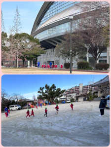 3学期が入り、給食も始まりました。来るマラソン大会にむけて練習も始まりました( `ー´)ノ‼年少さんドーム1周1㌔、年中さんドーム1周半1.5㌔、年長さんドーム外周を2週の2㌔の距離を駆け抜けます‼